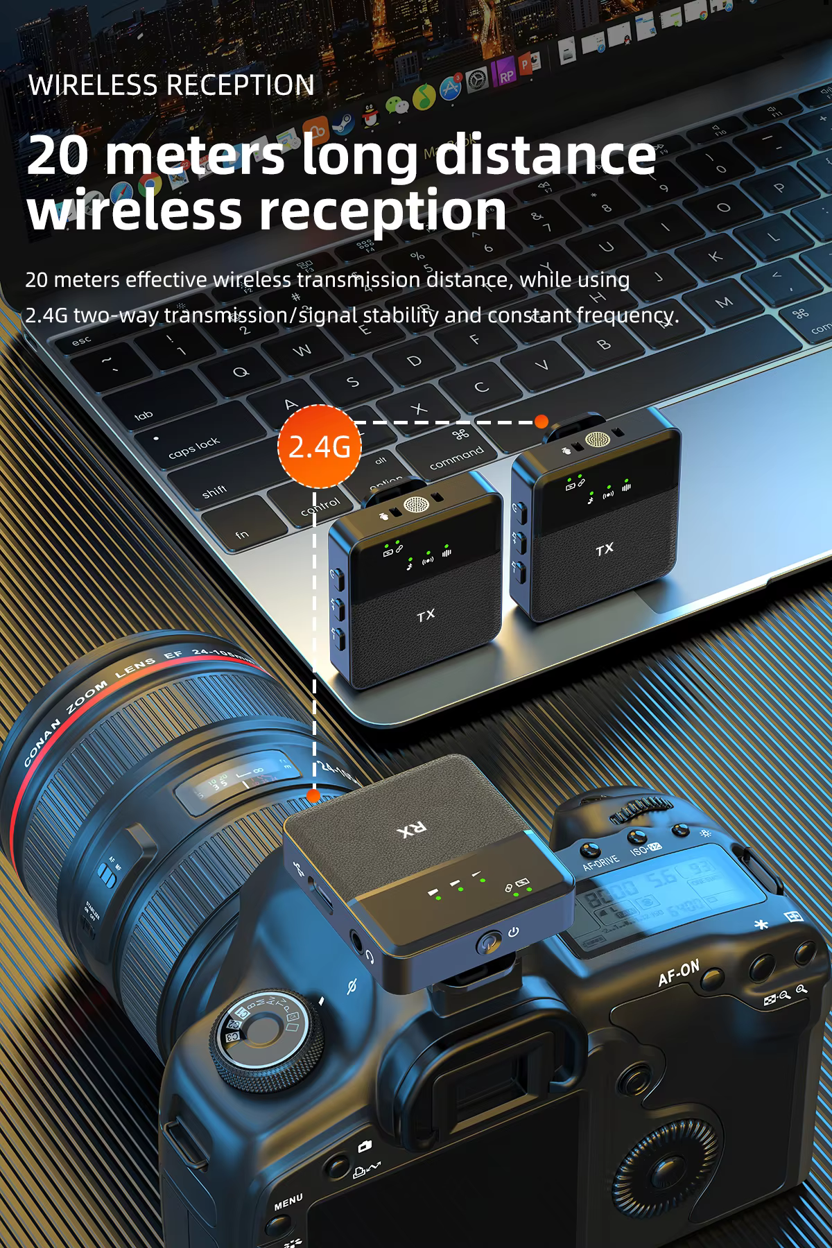 ✅ Dual Microphone (1 Receiver : 2 Transmitters) – Perfect for interview & vlogging